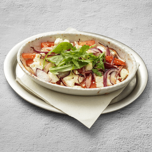 mit Schafskäse, Tomaten, Artischocken und Zwiebeln